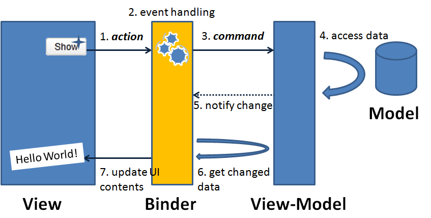 Below shows an example of hello world using MVVM and a flash demo. For more information please click here.