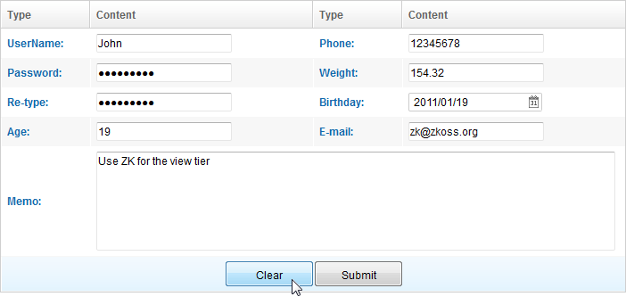 ZK Bind is a whole new data binding system with new specifications and implementations. Based on the experiences learned from our version one data binder and feedbacks from users’ and contributors’ suggestions, we have created this easy to use, flexible, feature rich new data binding system in ZK6.