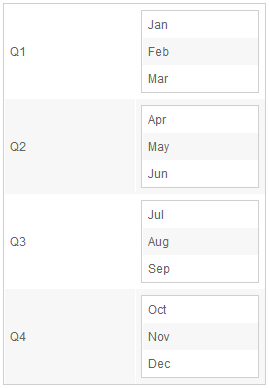 This demonstrates the basic usage of templates, it is however, possible to implement more advanced layouts. The following example demonstrates a recursive use of templates in a Listbox.