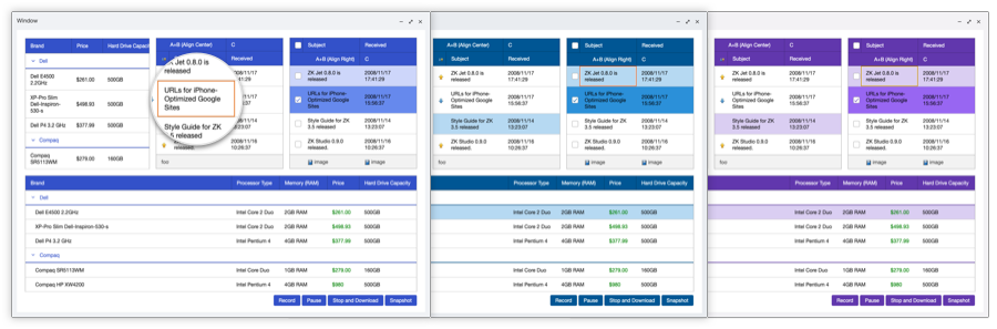 ZK Theme Template provides an easy way for theme customization. It is now updated to support compact themes — you can now customize a compact theme (e.g. iceblue_c) as easy as the standard themes, and upgrade the theme easily (continuous/incremental compile) when you upgrade your ZK version.