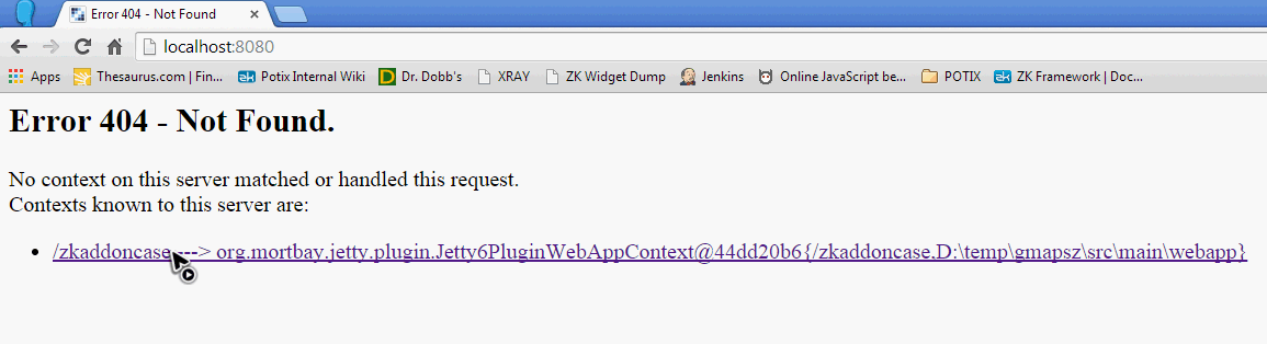 http://localhost:8080. A browser will show a link with the correct