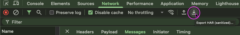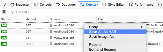 Save request details as HAR in Firefox